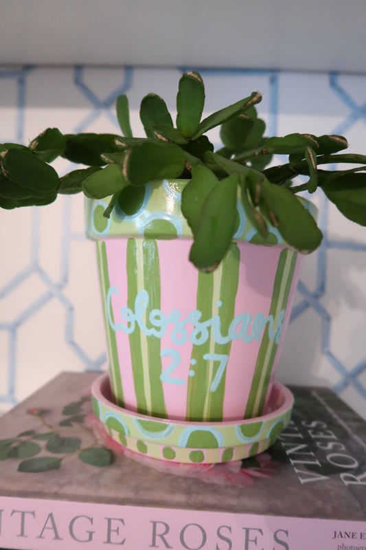 hand painted // colossians 2:7 flower pot