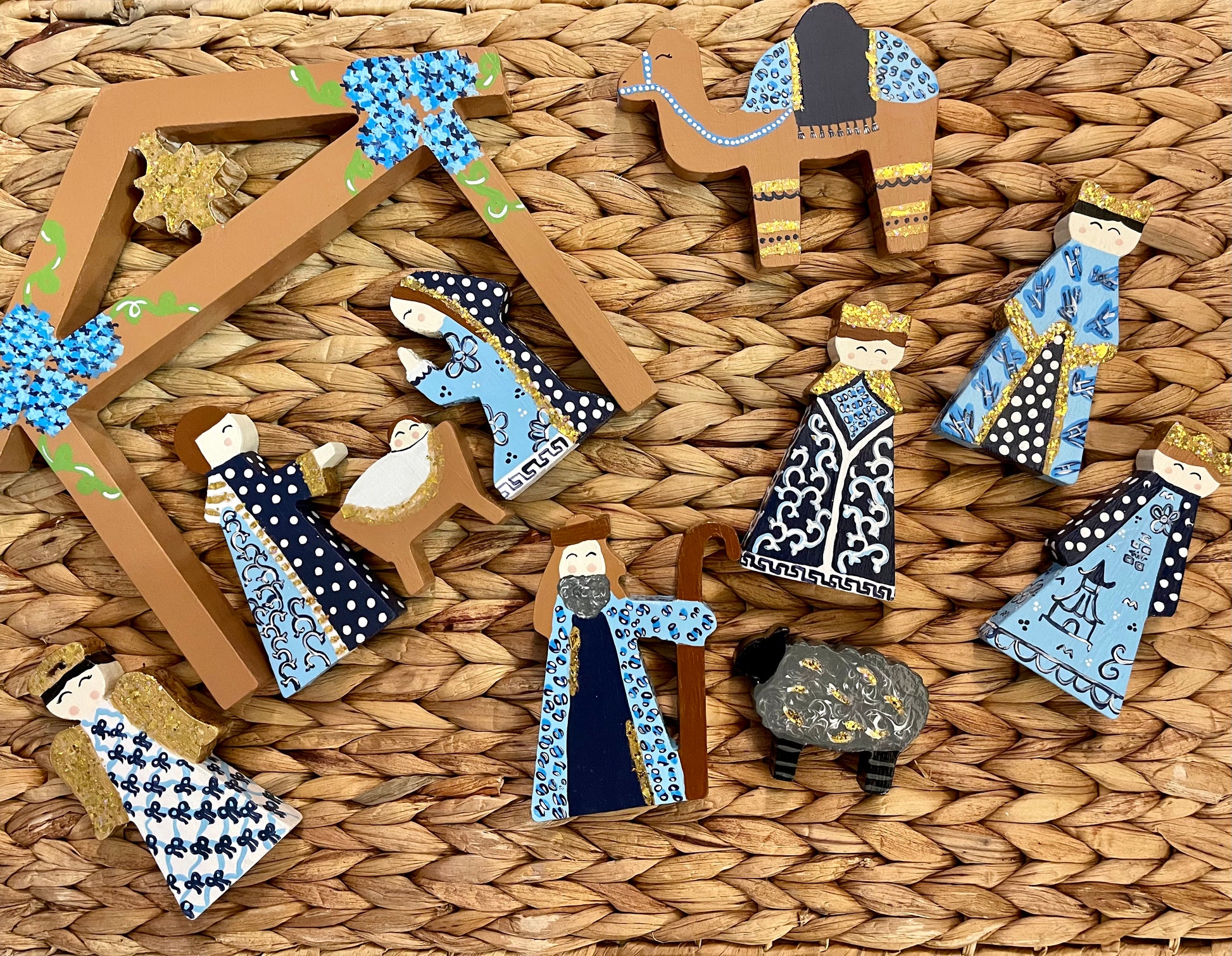 these nativity scenes are hand painted by yours truly! they are so much fun and are the perfect heirloom piece for generations to come. they are made to order so please allow 3 weeks for them to be shipped. :)