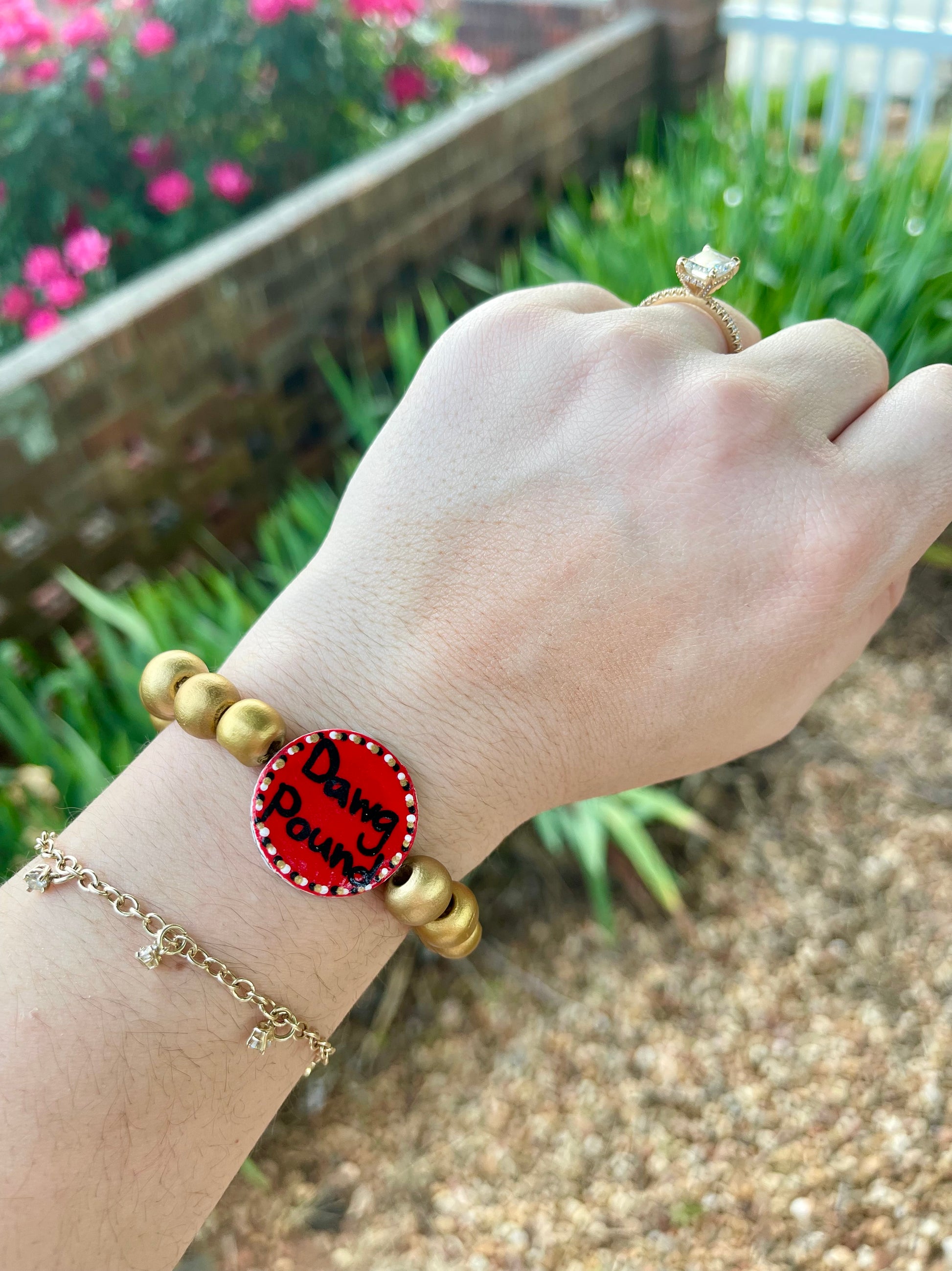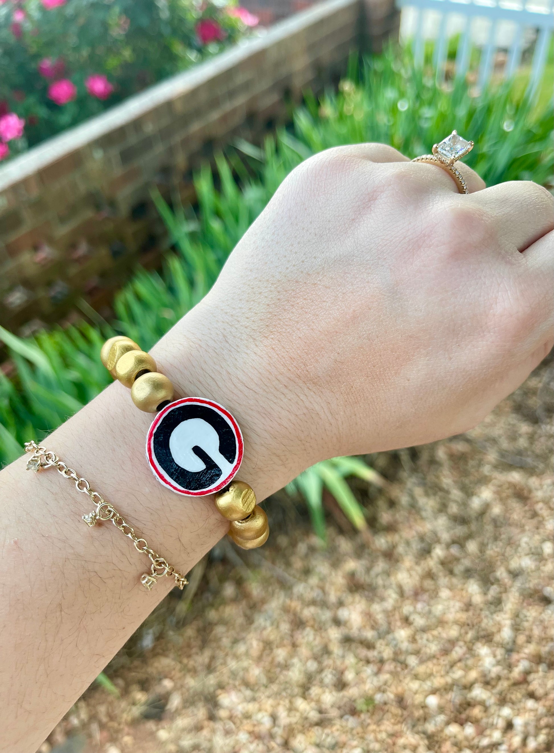 hand painted university of georgia bulldogs flip bracelet. one side is the UGA logo and the other side says, “DAWG POUND”. basically two bracelets in one!