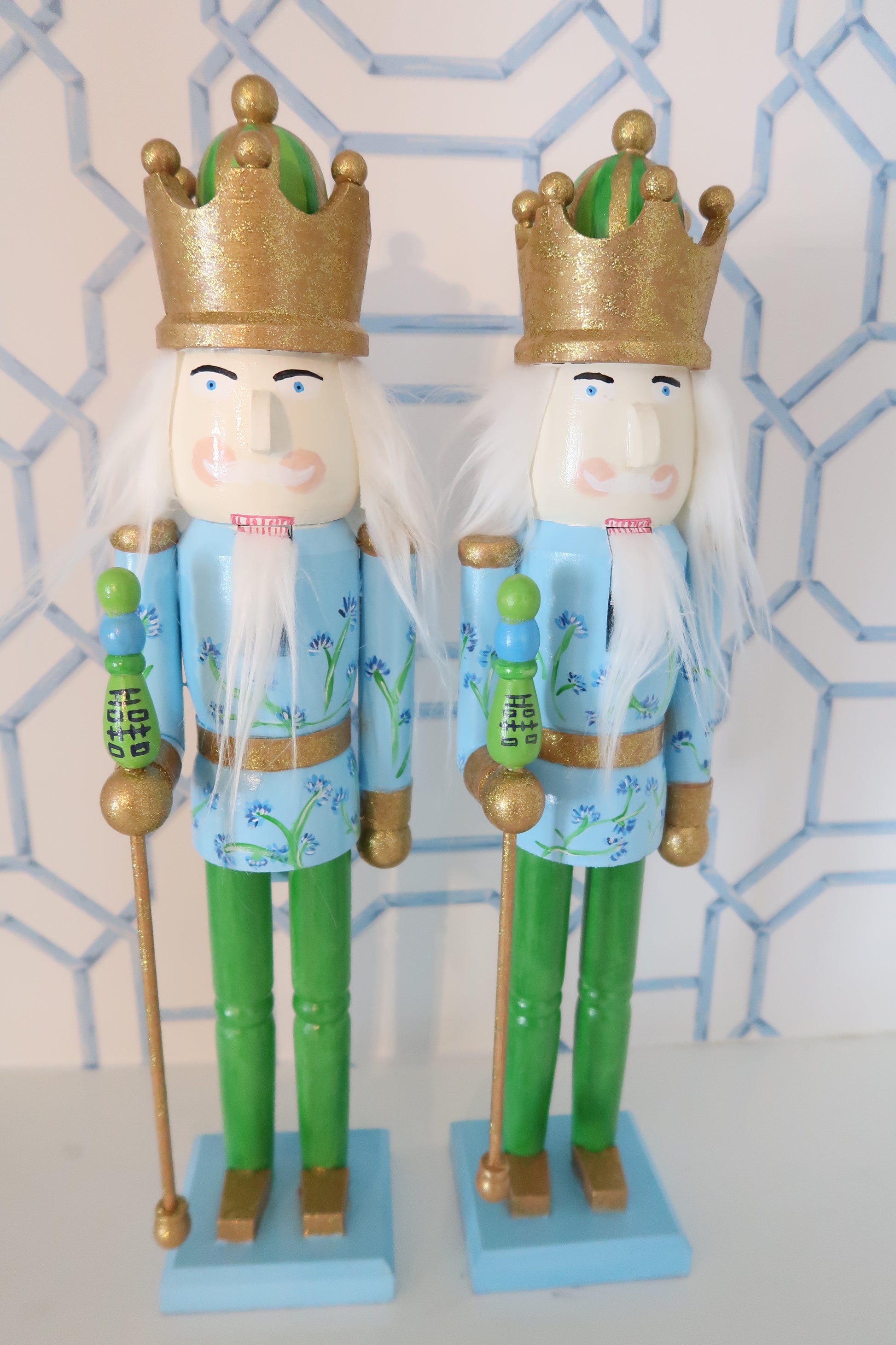 we are here to make all your chinoiserie dreams come true with these double happiness nutcrackers! the greens will go with any style of christmas decor that you have and it will surely make a statement in any room. 18" tall