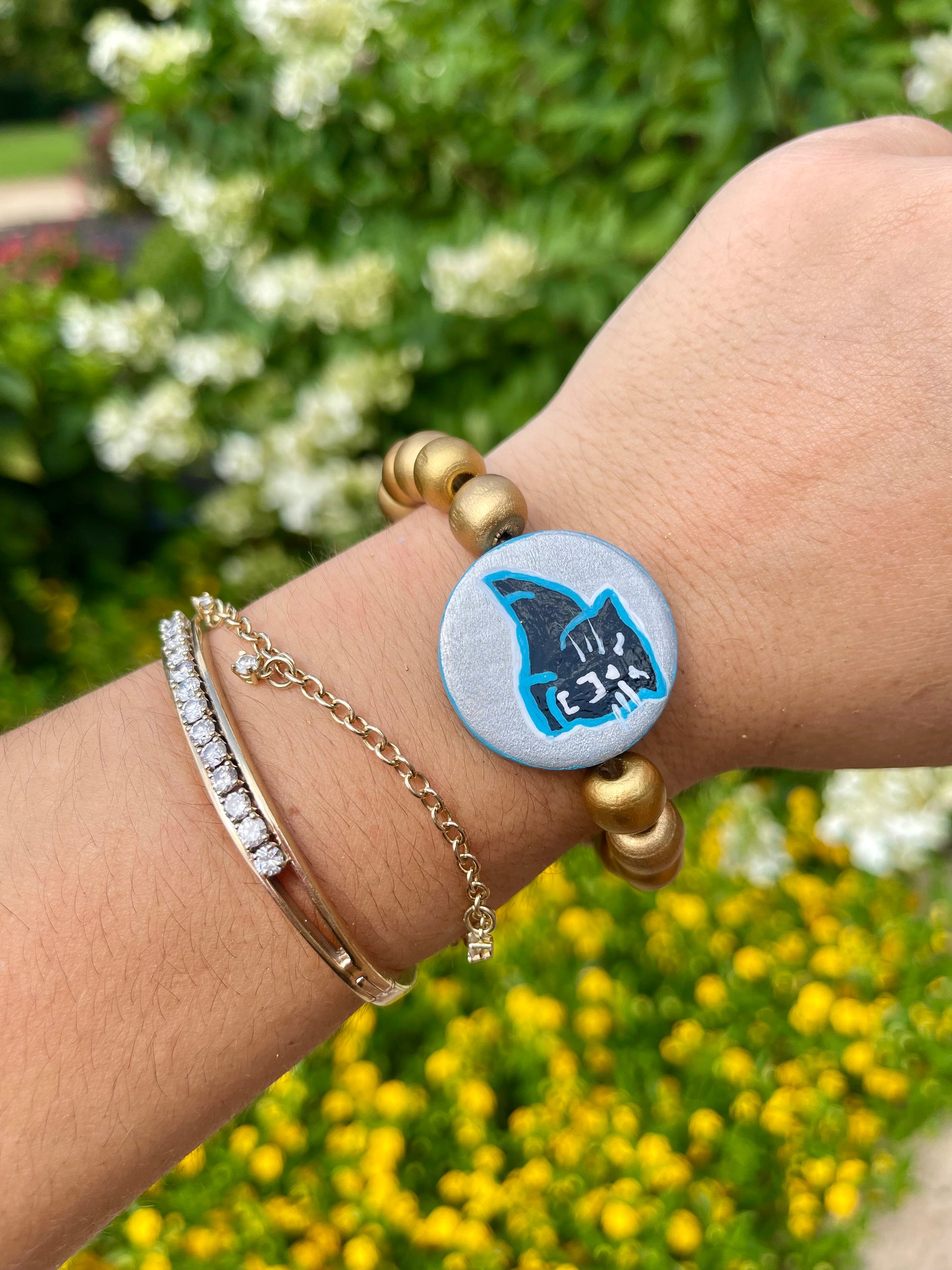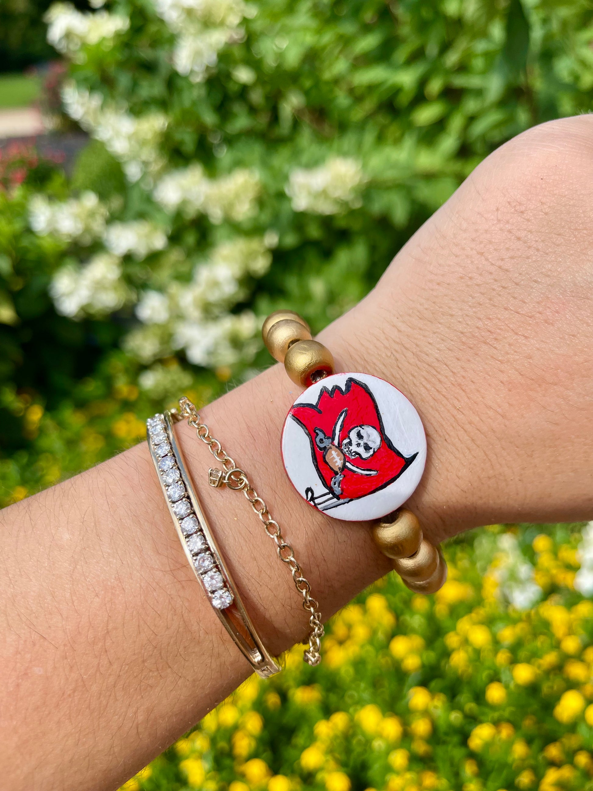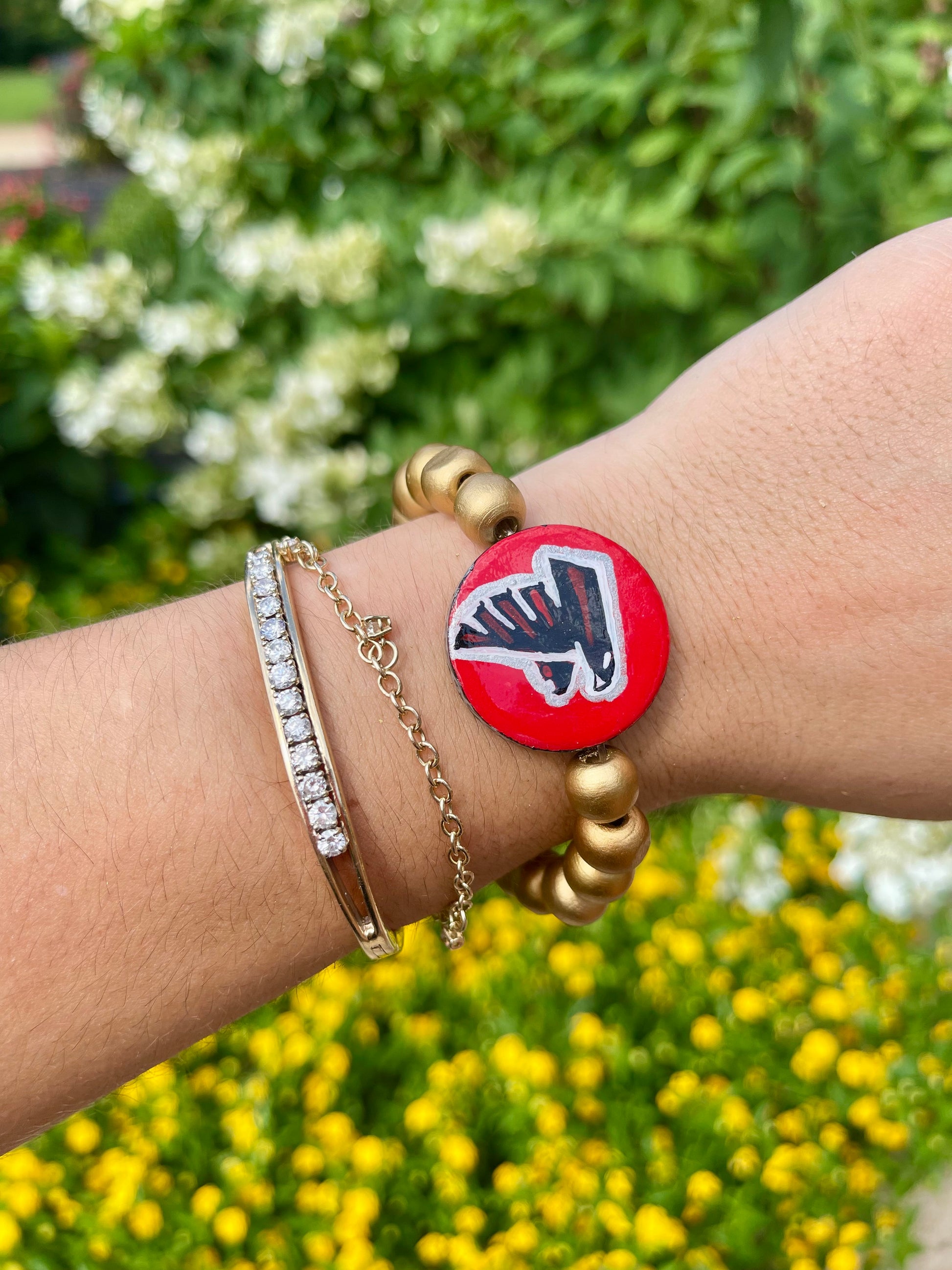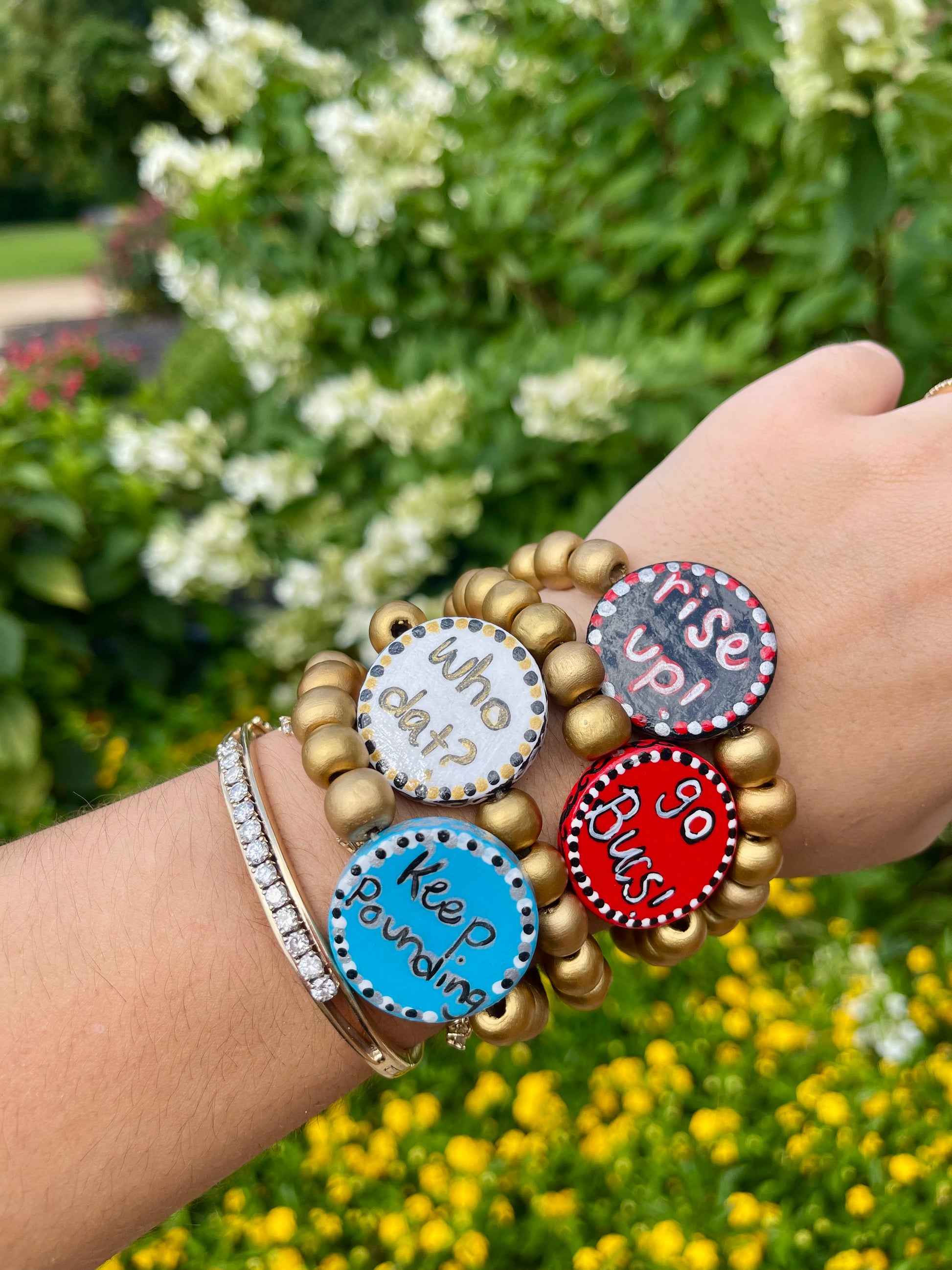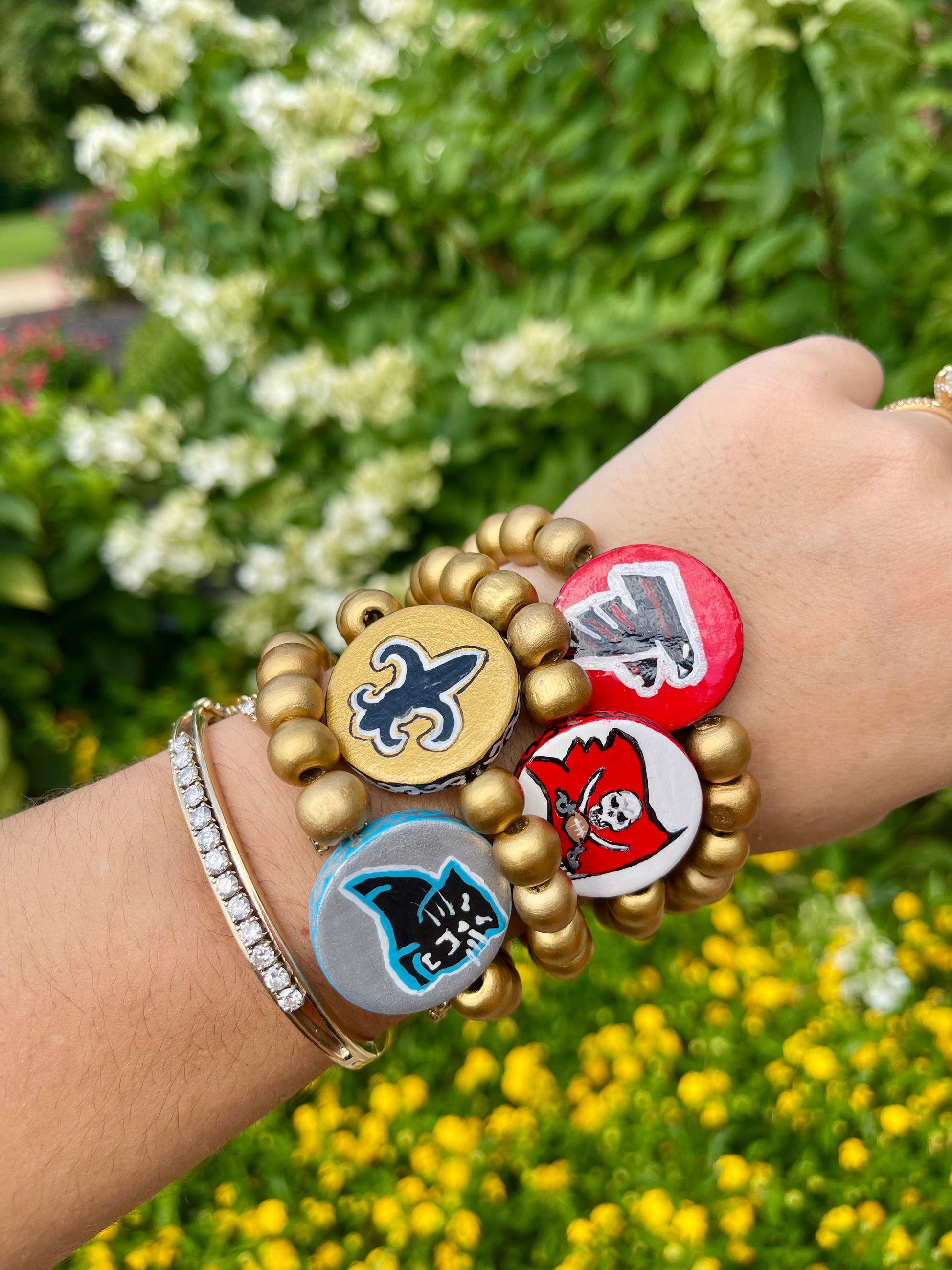 NFCS pro football flip bracelets. these hand painted bracelets have the team on one side and a popular phrase or chant on the other side. they are two bracelets for the price of one!