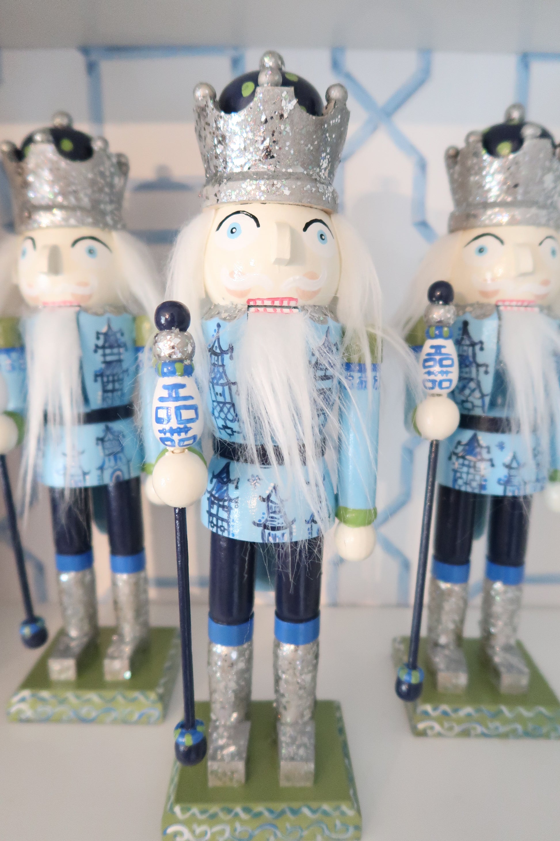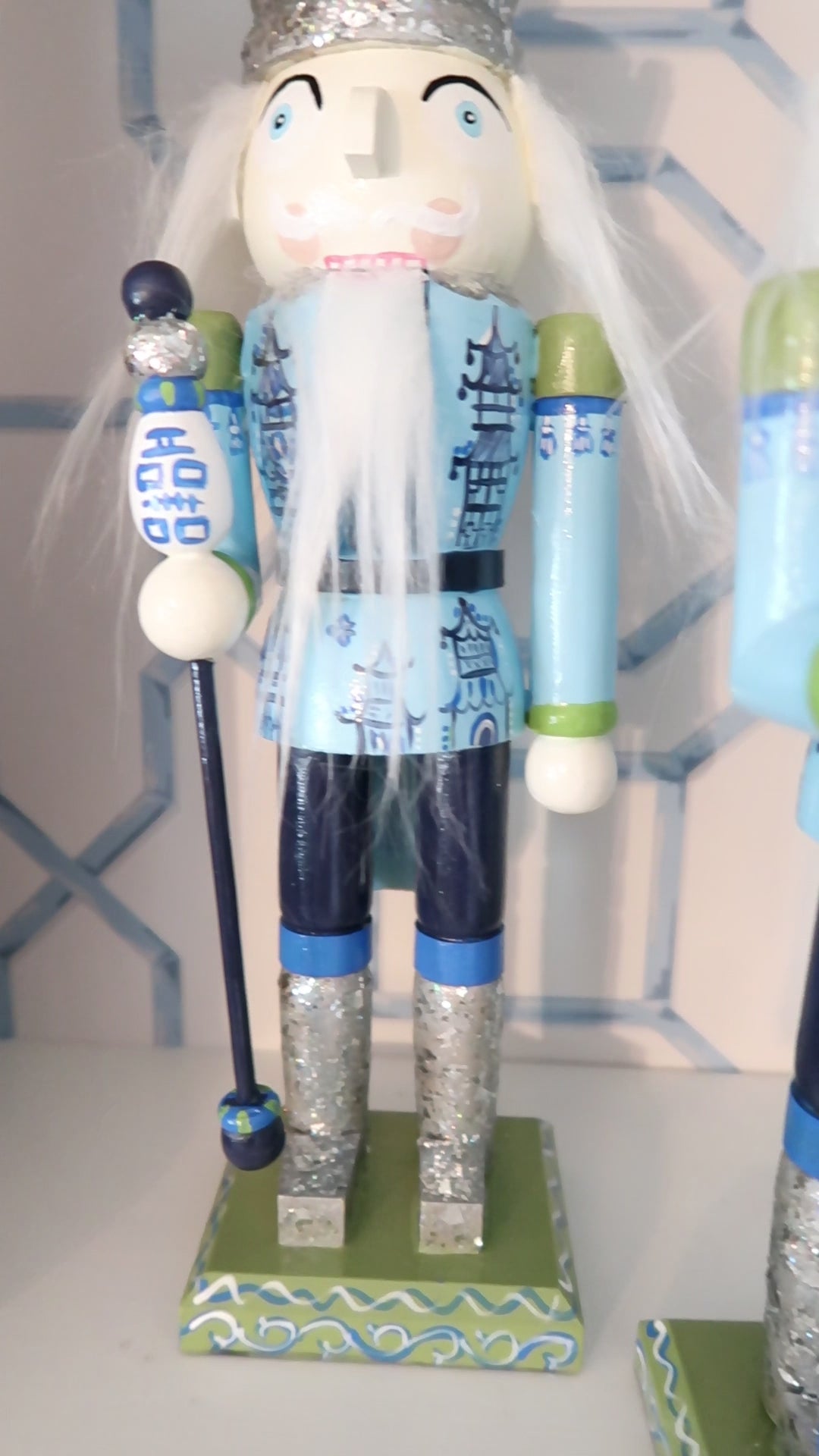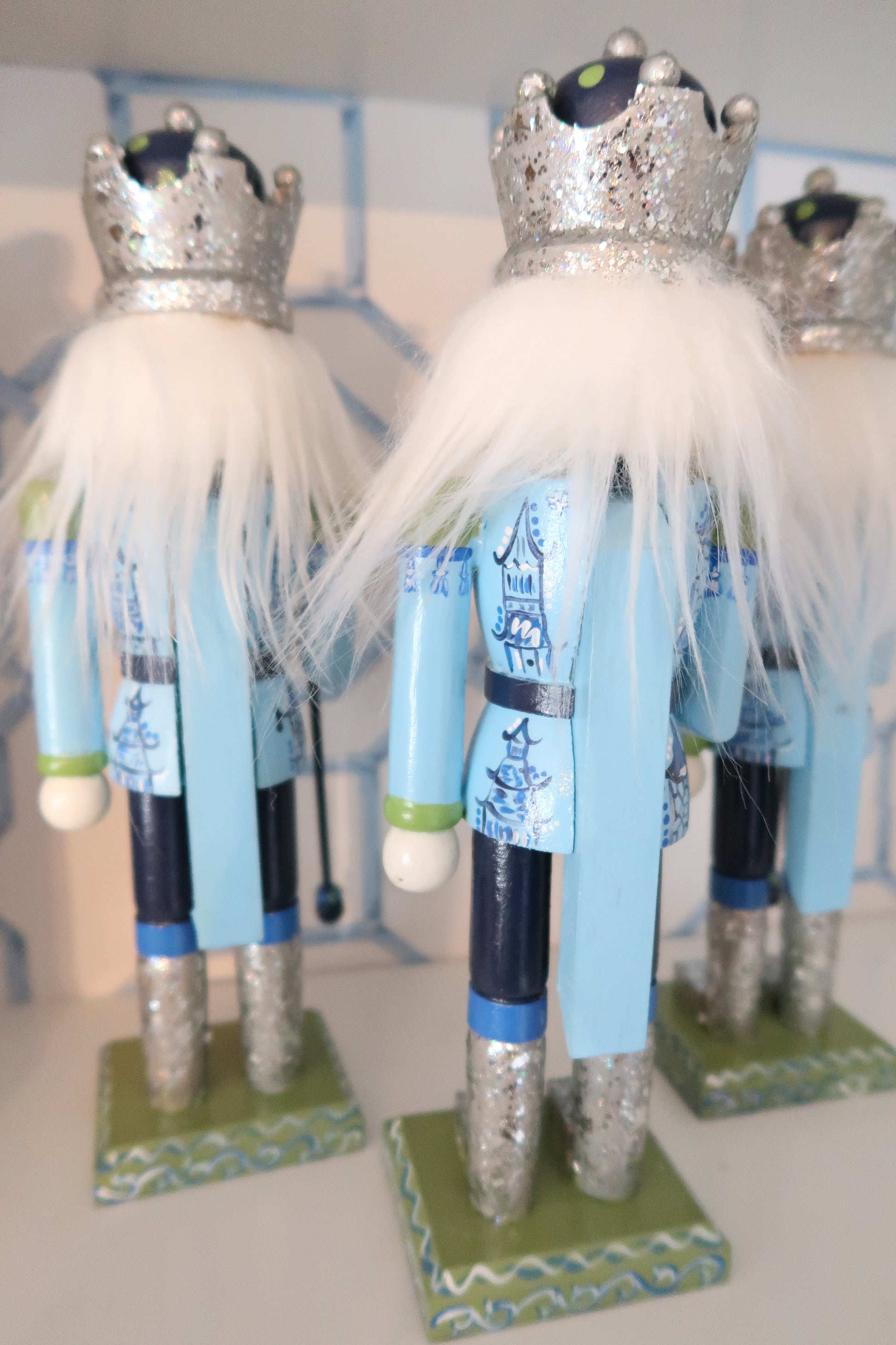 there’s something about the blues and greens that is so peaceful. these hand painted nutcrackers have beautiful pagodas on their jackets and give off the perfect chinoiserie aura. they are 12” tall and full of personality!