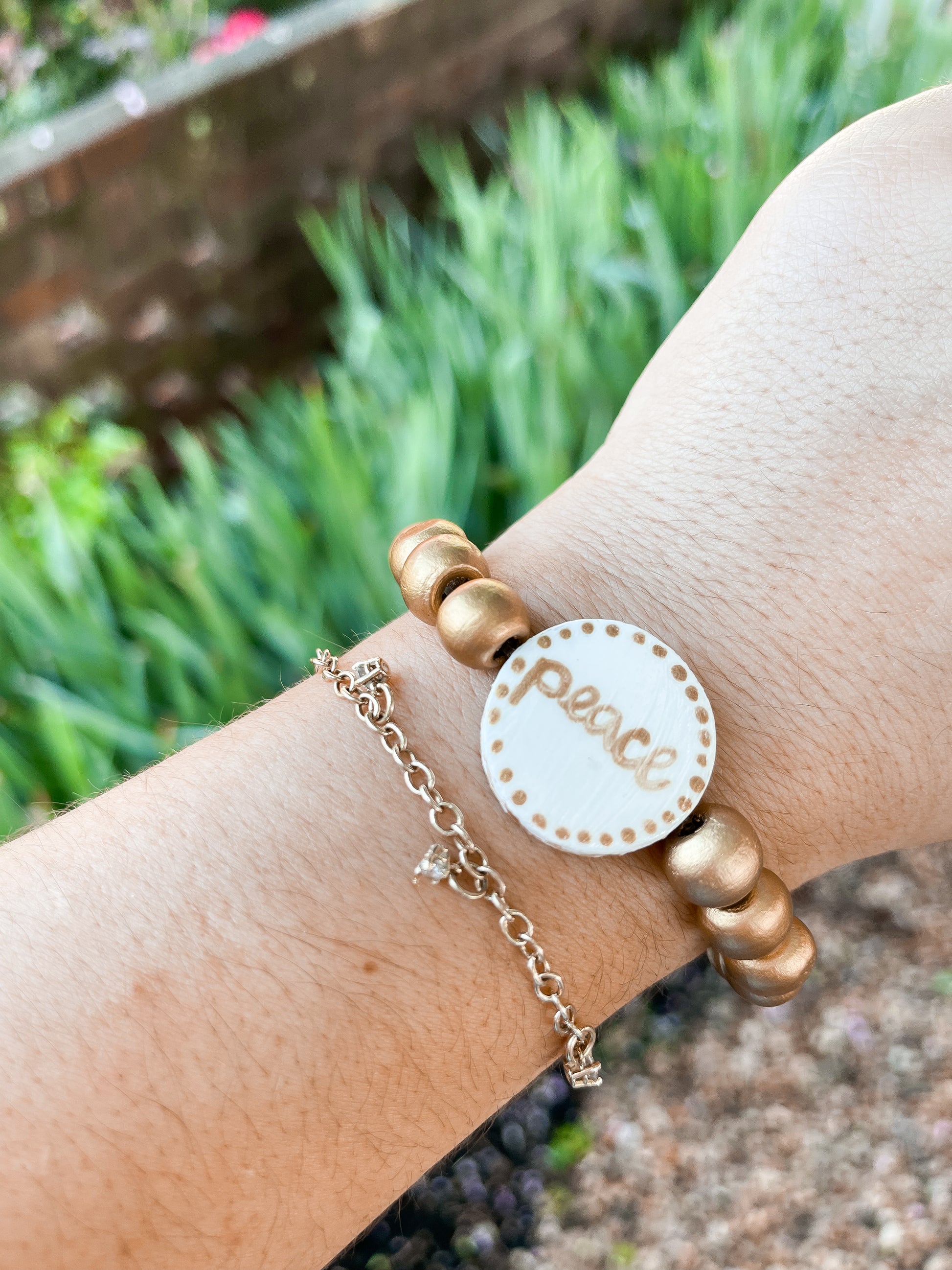 we pray that these hand painted bracelets find you well! these would be perfect for you or anyone that you know who may be going through a difficult time that needs an extra bit of encouragement. the front side says, “PEACE” while the backside has the Bible reference, “Psalm 23:4” which says, “Even though I walk through the darkest valley, I will fear no evil, for you are with me; your rod and your staff, they comfort me.”