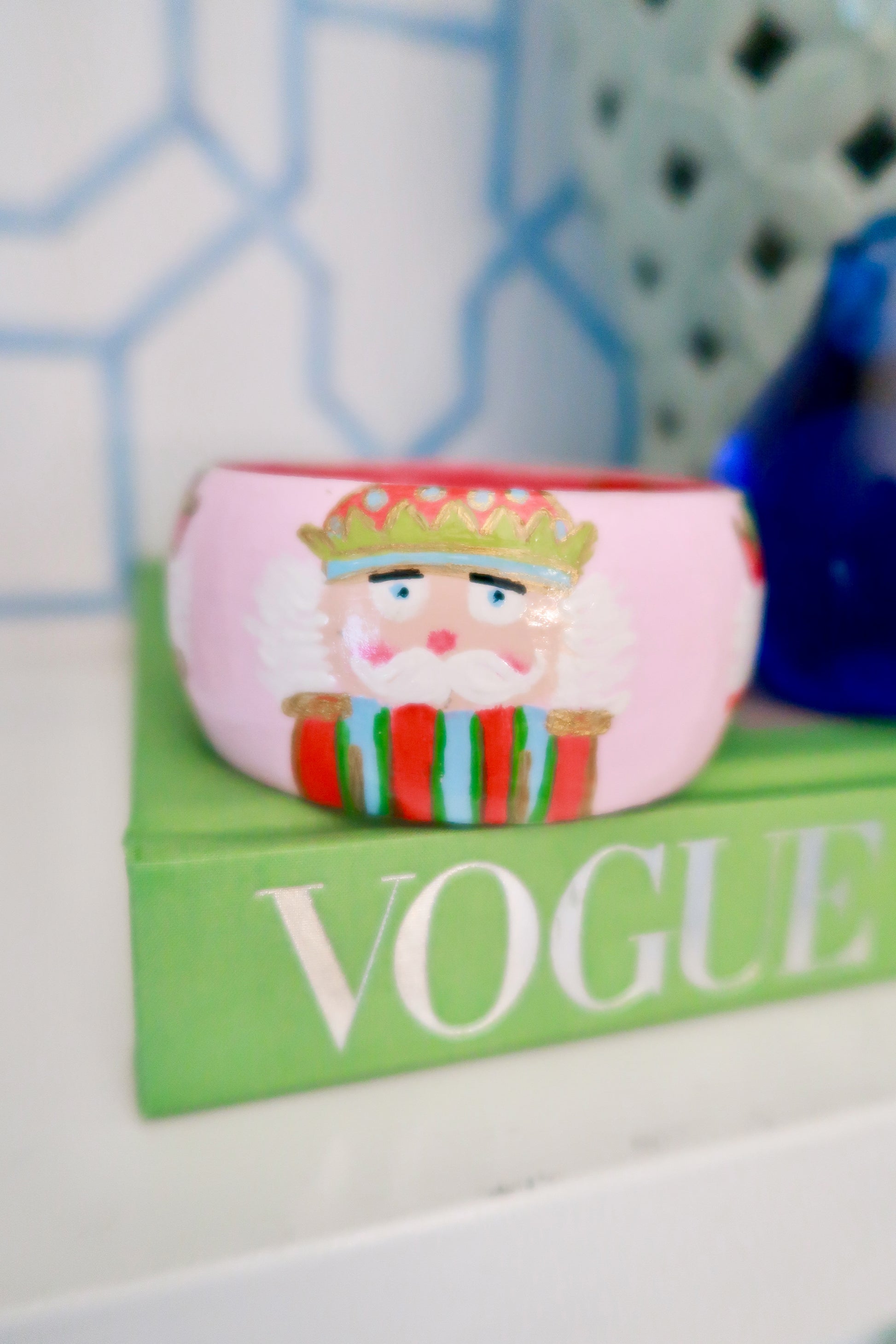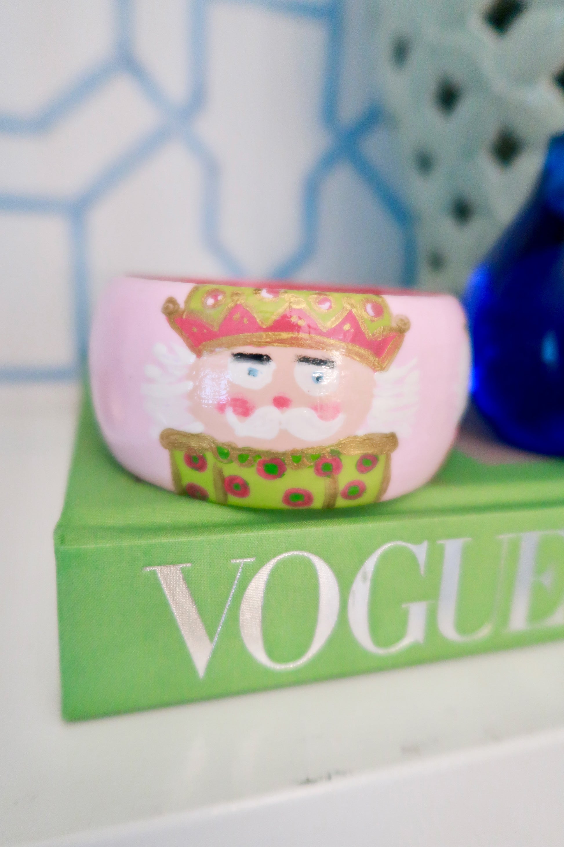 four hand-painted nutcrackers march cheerfully around this festive bangle, bringing holiday charm in every detail. each one is painted with pops of pink, green, and gold for a whimsical touch of sparkle. hidden inside the bracelet is a sweet reminder of strength and courage with Joshua 1:9; a little blessing you can carry with you wherever you go. this heirloom inspired piece is more than jewelry; it’s wearable art designed to bring joy, faith, and festive cheer all season long.
