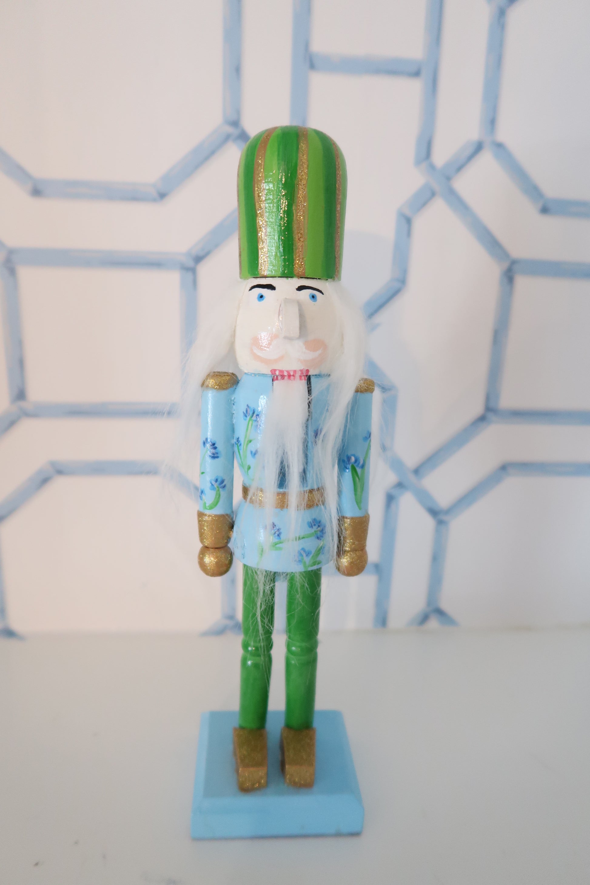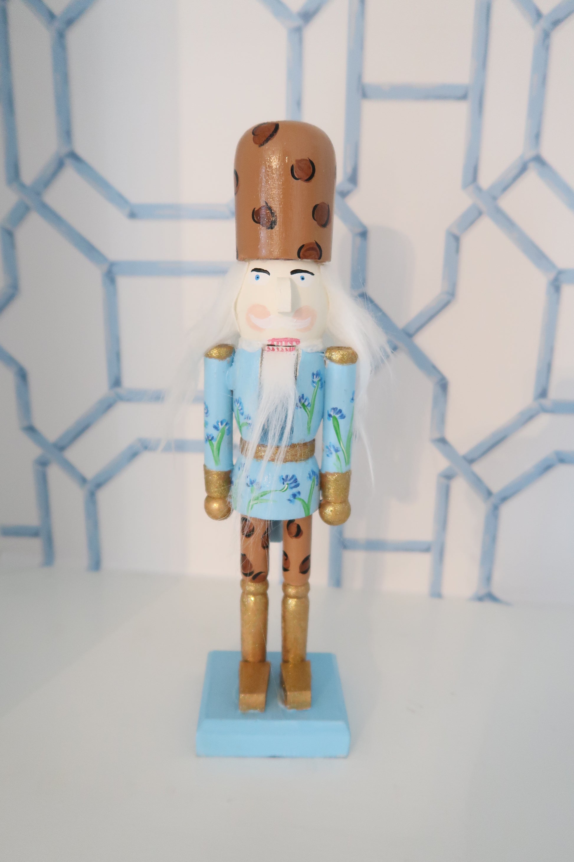 how fun are these guys! a love of floral plus a love of leopard, how could it be?! these nutcrackers are so cute and could really go with any christmas vibe whether thats blues, whites, pinks, or traditional reds and greens. they are 10" tall, but make such a big impact.